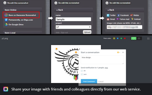 5. Interact with point-specific comments between friends and colleagues thru the new awesomescreenshot.com