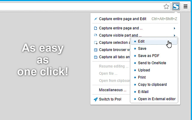 Take FULL webpage screenshots. Capture, edit and save them to PDF/JPEG/GIF/PNG, upload, print, send to OneNote, clipboard or email.